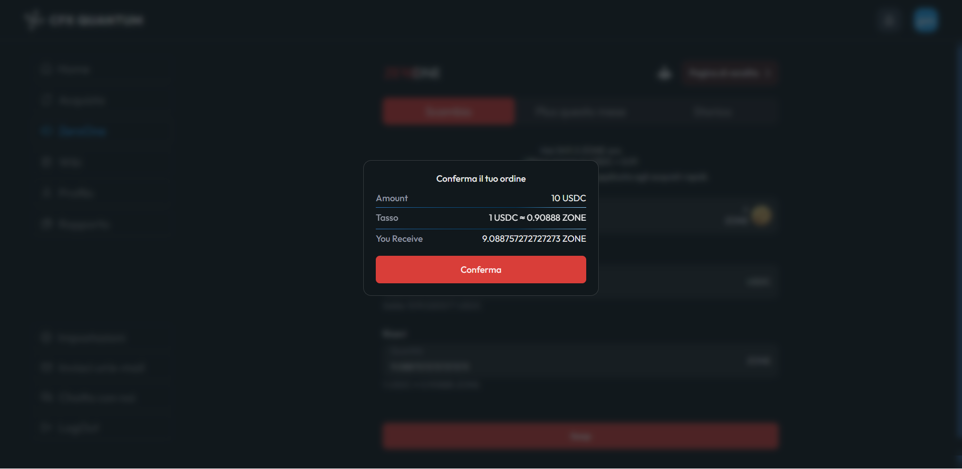 You can check the transaction from the Home Page by clicking on the USDC balance to see the sale and on the Zeroone balance to see the purchase.