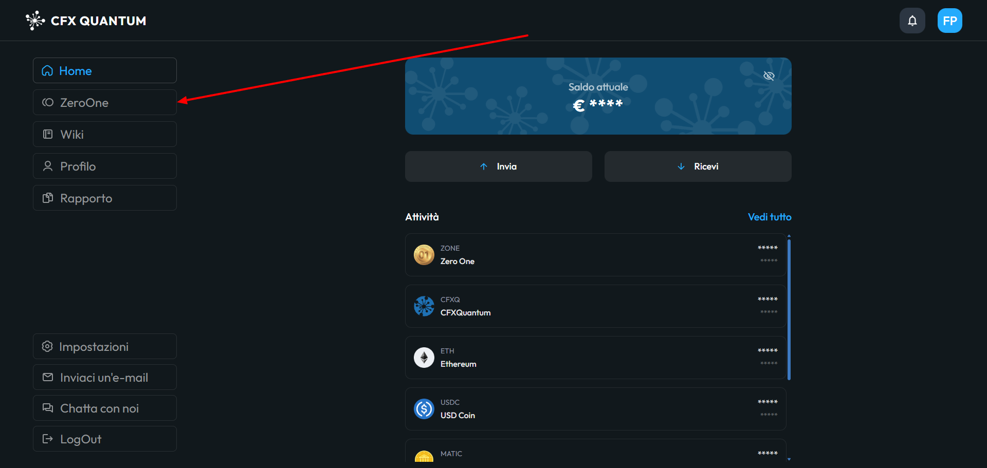Per monitorare lo stato di avanzamento della richiesta cliccare su Zeroone dalla Home